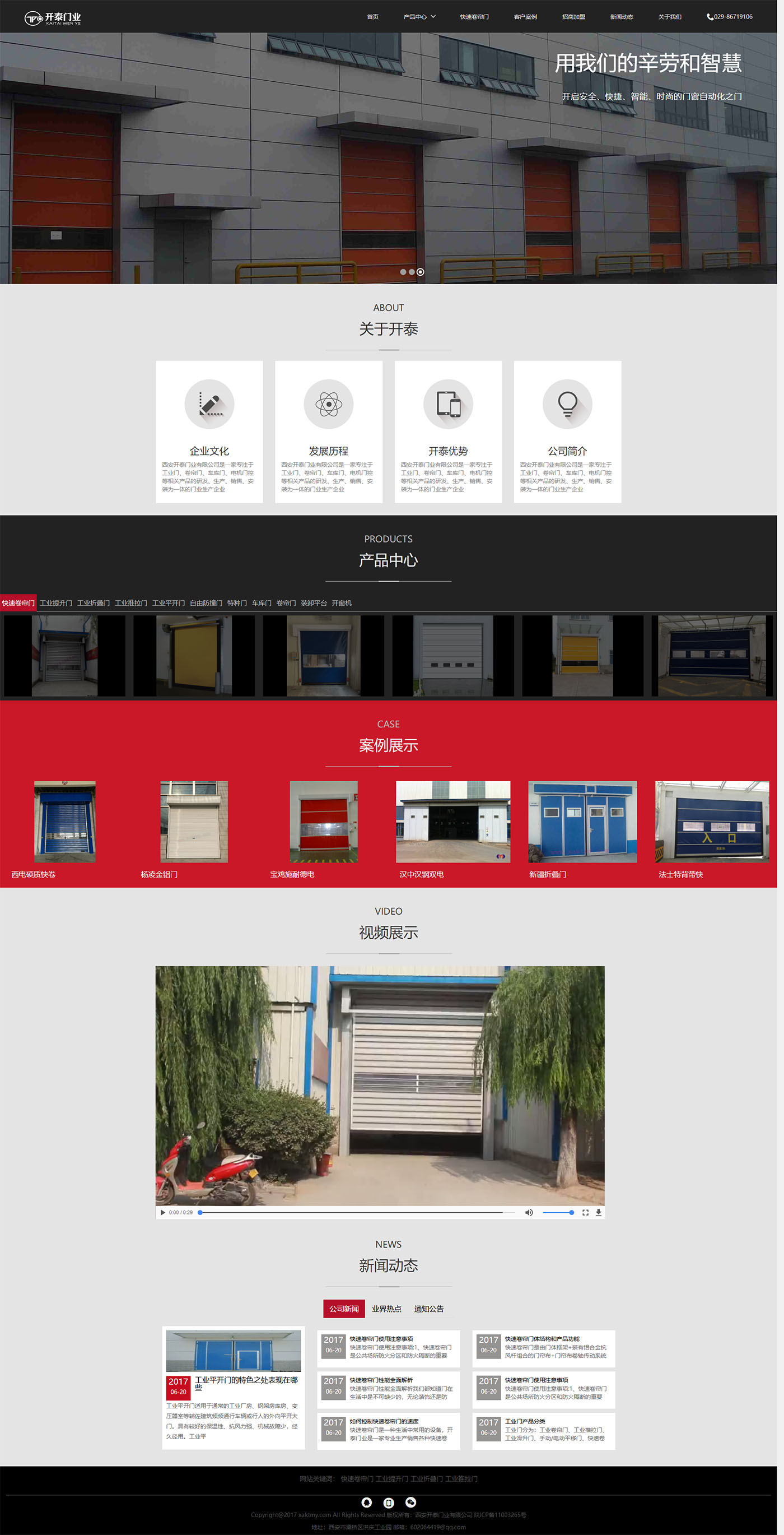 西(xī)安開(kāi)泰門業(yè)有(yǒu)限公司是一家專注于工(gōng)業(yè)門、卷簾門、車(chē)庫門、電機門控等相(xiàng)關産品的(de)研發、生産、銷售、安裝爲一體的(de)門業(yè)生産企業(yè)。